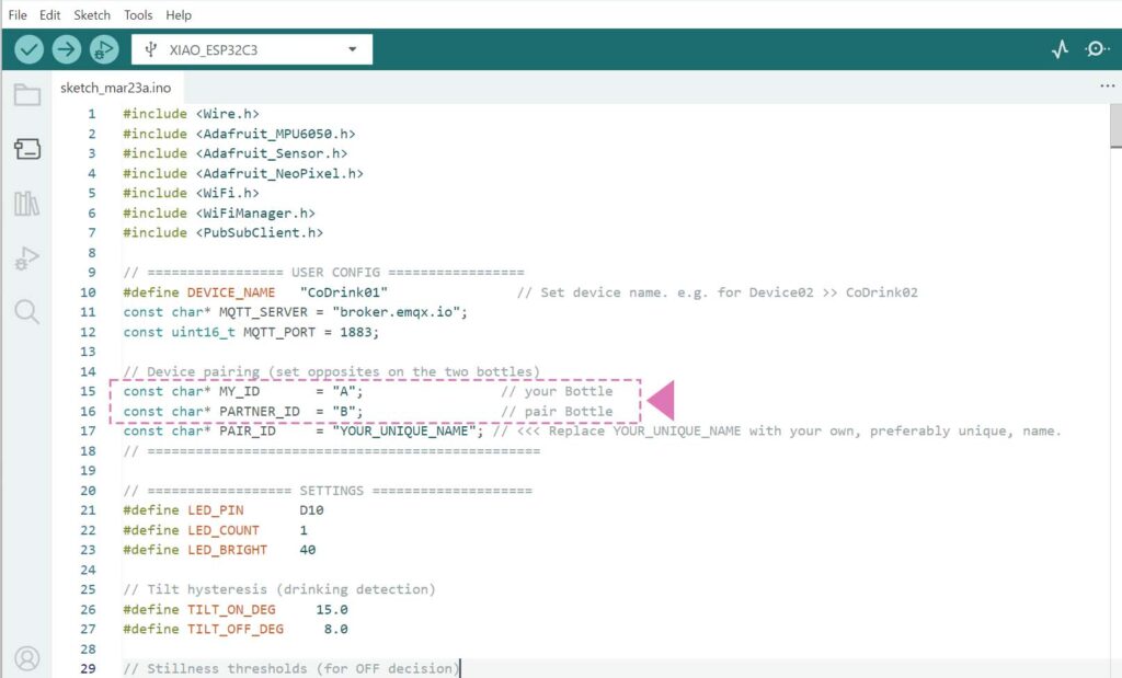 Diese Anleitung führt dich durch die einzelnen Schritte, wie du eine vernetzte Trinkflasche baust, die dir hilft, auch über Distanz gemeinsam mit einer anderen Person zu trinken.